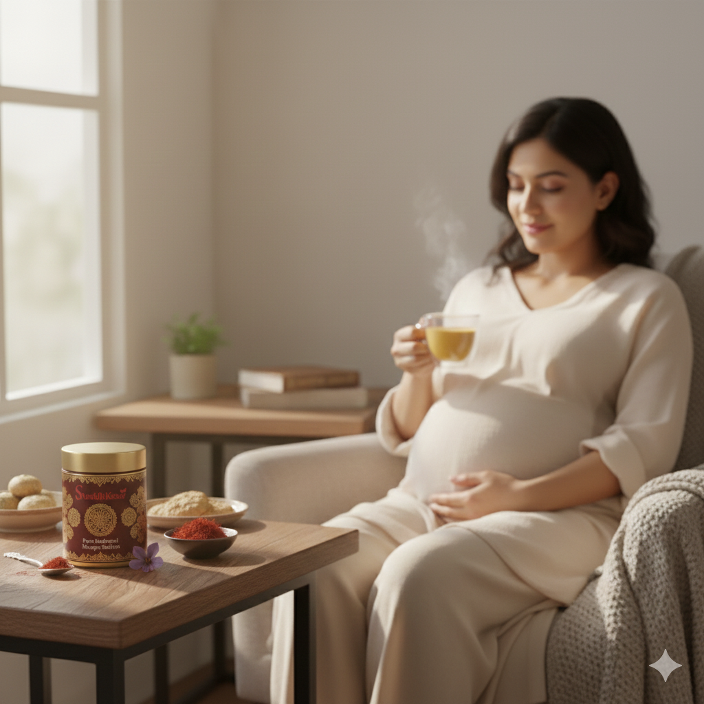 Yes — pure Mongra saffron is traditionally used for maternity wellness. Use 2–3 strands daily (or confirm with your doctor).